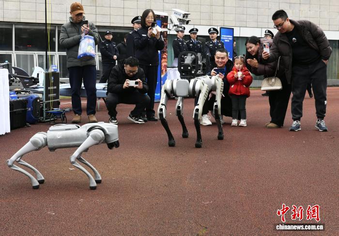 图为举动现场,警用呆板狗吸收观光者眼球。中新社记者 周毅 摄
